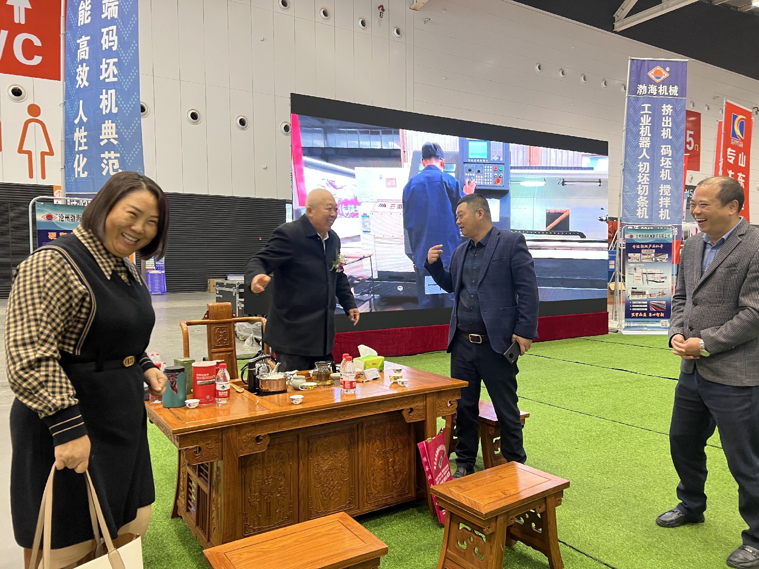 行業(yè)領(lǐng)導(dǎo)來到渤海機械的展廳,和董事長張加祥合影并進(jìn)行親切交談,對我公司的一直以來的工作予以肯定,希望渤海機械作為磚瓦裝備生產(chǎn)制造的資深企業(yè),再接再厲,繼續(xù)為行業(yè)的發(fā)展做出突出的貢獻(xiàn)。